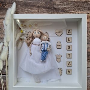 Anioł stróż z dzieckiem gablotka3d metryczka na chrzest